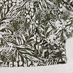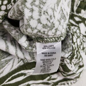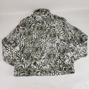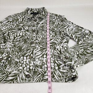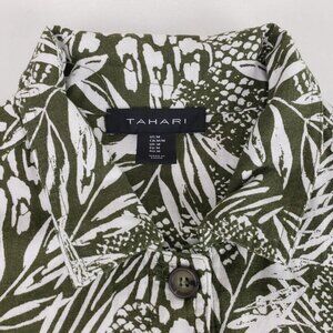 Tahari Linen Blend Button Up Jacket Womens Medium Green Leaf Print Lightweight