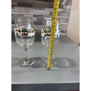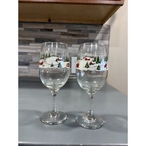 Libbey Currier Ives Wine Glasses Water Goblet Christmas Winter Scene Set of 2