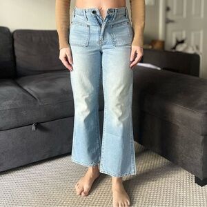 Khaite Rachel Patch Pocket Flare Jeans - Light Blue Denim Austin - Size 28