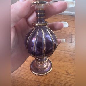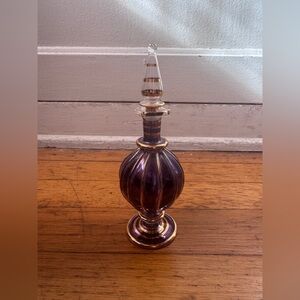 Vintage Amethyst Glass Perfume Bottle w/ Stopper – Gold Gilt – Y2K Era