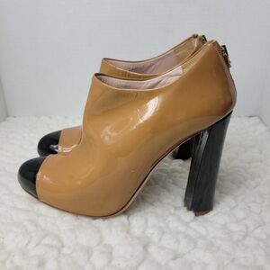 Miu Miu Bottie Women's Shoes Size 6.5 Beige Patent Leather Black Cap Toe Zipper Good Condition See Pictures For More Details.
