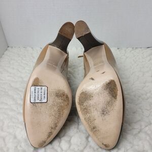 Miu Miu Bottie Women's Shoes Size 6.5 Beige Patent Leather Black Cap Toe Zipper