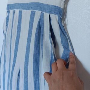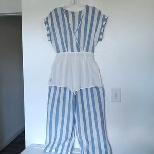 Miss Me jumpsuit Striped Linen White Blue pockets Summer Beach Vacation sz S