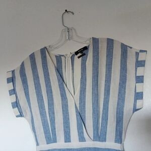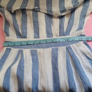 Miss Me jumpsuit, 100% linen exterior, 100% viscose interior shorts, size S, blue and white lines, crossed V-neck, with slip pockets on the sides, full back zipper, kimono sleeve, 23.5 inch inseam, length jumpsuit 52 inches, 17 inches in bust, keep in mind that this garment does not stretch, the waist is small, it is 13 inches in waist, it does not have the strap that decorates the waist, look carefully at your measurements, please, garment well washed and ironed in good condition.