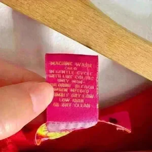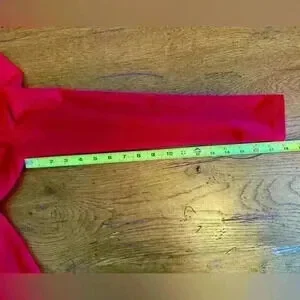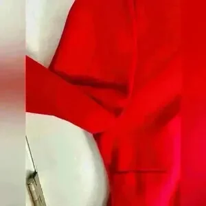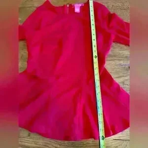Very elegant fitted red blouse with pleats at the waist for a little flair. Comfortable stretchy fabric made of 65% rayon, 30% polyester and 5% spandex. Pre-owned and in good condition with no visible stains (one spot of marker on the tag), tears or pilling.