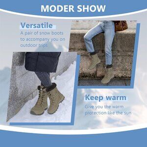 Women's Green Waterproof Winter Lightweight Warm Faux Fur Lined Mid-calf Boots