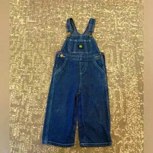 John Deere Unisex Kids Denim Bib Overalls Size 2T Blue Cotton Adjustable Straps