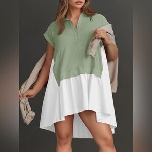 Brand new Fisoew womens summer sweatshirt dress in green, size large. Features a short sleeve V neck design with an oversized, relaxed fit and subtle patchwork style detail for an effortless casual look.