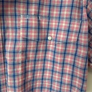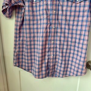 Wrangler Men’s Plaid Western Pearl Snap Shirt Short Sleeve Pink Blue Size Large