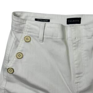 Talbots Women’s White Wide Leg Jeans Size 10 High Rise Button Front Cotton Blend