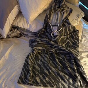 Gray Zebra Print Hoodie and Shorts Pajama or Casual Set