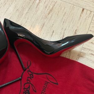 Sleek and glossy black heels. Signature red sole. Perfect for a chic look. It comes with dust bag and Shoe Sole Protector 2 pieces.