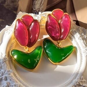 - - 18K GP Vintage Tulip 🌷 Dangle Earrings
