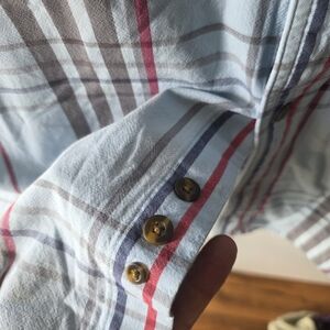 Classic Carhartt short sleeve button-up shirt in a light blue plaid.