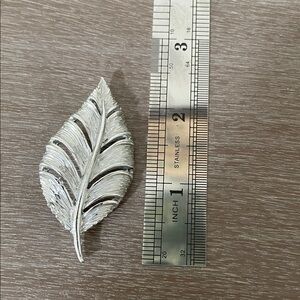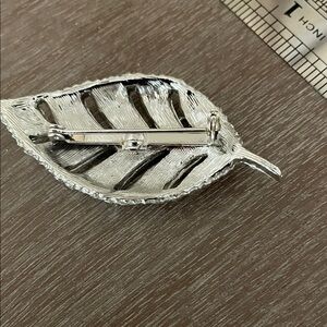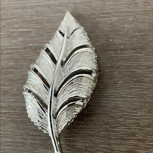 Elegant leaf-shaped brooch. Intricate detailing. Perfect for any outfit.