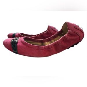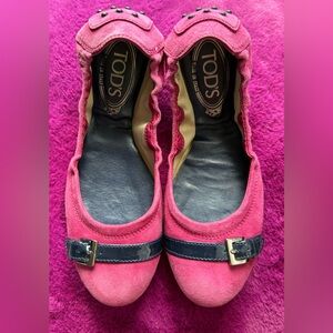 Tod's Fuchsia and Navy Suede Belted Cap Toe Ballet Flats