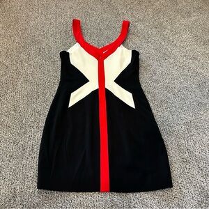 JAY GODFREY Size 4 S Red Black Ivory Geometric Cocktail Pencil Dress R $345