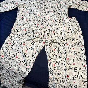 Victoria's Secret White Pajama Set with Black and Red Print
