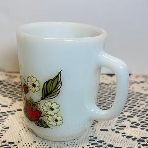 * 1 - Vintage Anchor Hocking Fire King Coffee Mug Strawberry Fields Milk Glass