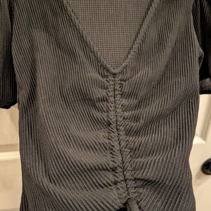 Chic black crop top with ruched front. Perfect for stylish outings.