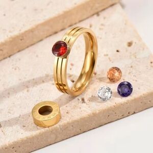 ✨🆕✨ Stunning 18K Gold Plating Over Titanium Steel Numeral Zircon Interchangeable Ring✨