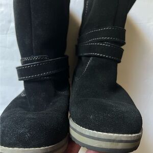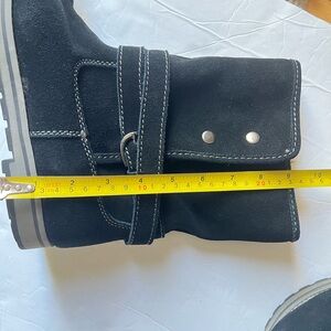 Super cozy winter boots, unique snap closure, wrap detail with silver tone buckle, very good preowned condition
