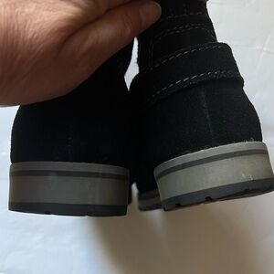 Women’s boots black suede short boots faux fur lined wrap detail 8.5