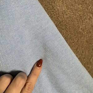 Item: Mens quarter-zip pullover sweater in a light blue color.
