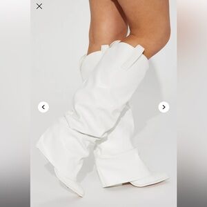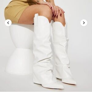 Knee High White Boots. Leather. Size 9. Excellent condition. Worn once w/Halloween costume. Comfortably and easy to pull on.