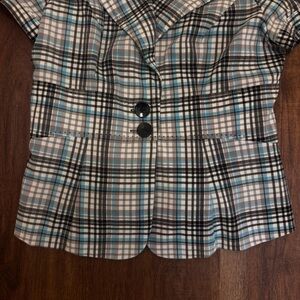 Seductions Size: S Y2K Vintage Blue White Plaid Form Fitting Button Blouse Top