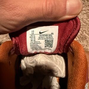 Nike sneakers in maroon and orange. Bold design with comfort.
