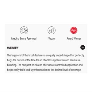 The large end of the brush features a uniquely sloped shape that perfectly hugs the curves of the face for an effortless application and seamless blending. The compact brush end offers more controlled application and helps easily build and layer foundation to the desired level of coverage.