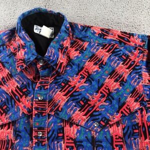 VTG Rockmount Shirt Mens M Red Blue Oversized Cape Western Pearl Snap Ranch USA