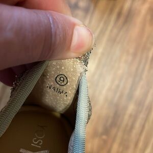 Yosi Samra women’s 9 heels shoes Naima sparkle block round toe glitter champagne