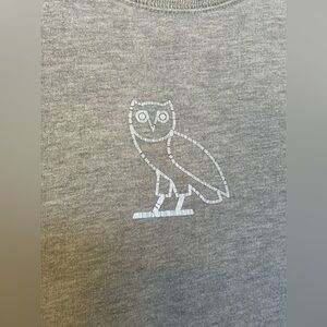 Octobers Very Own OVO Owl Logo crew neck sweatshirt in gray. Gently worn condition.