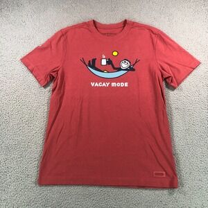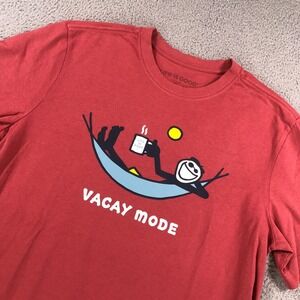 Life Is Good Shirt Adult Small Red Crusher Vacay Mode Coffee Hammack Sun Cotton