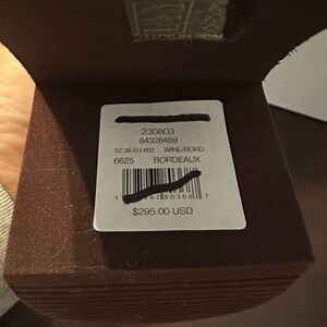 Label in boots is crossed out to prevent return to store.
