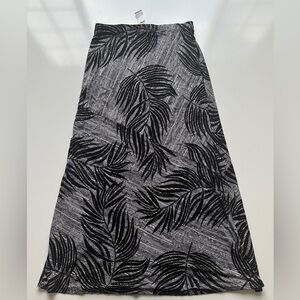 NWT Matty M Black White Tropical Palm Soft Stretch Flowy Maxi Skirt Womens Large
