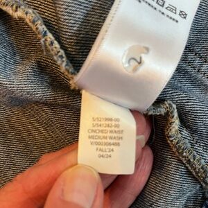 GAP women’s long oversize cinched waist denim jean jacket large NWT