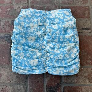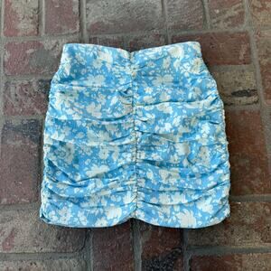 Mango Floral Blue White Skirt Ruched Mini NWT Size S