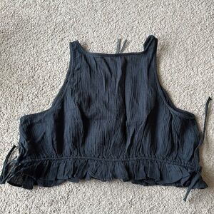By Anthropologie Smocked Tie Waist Crop Tank Top Faded Black