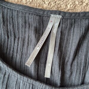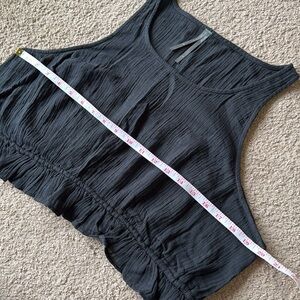 By Anthropologie Smocked Tie Waist Crop Gauzy Cotton Tank Top Faded Black
