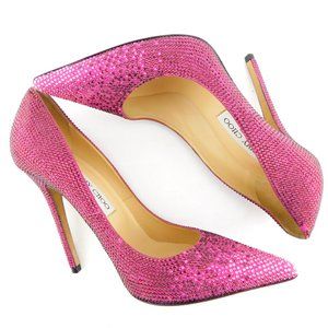 JIMMY CHOO Jazzberry Fuchsia Purple Sparkle Crystal Encrusted Heel Pumps 38.5