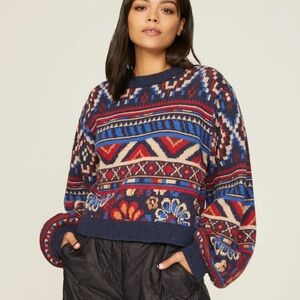 Farm Rio Ainika Tapestry Blue/Red Sweater XS BNWOT
