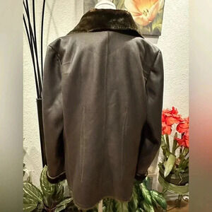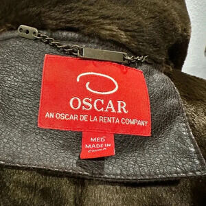 Oscar De La Renta Vintage Black Leather Faux Fur lined Long Sleeve Jacket Size M