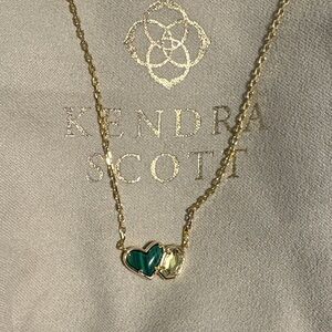 Kendra Scott Gold Necklace with Green and Clear Heart Pendants