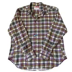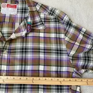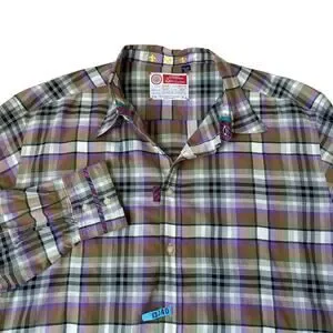 Robert Graham Men's Button Up Long Sleeve Shirt in purple plaid patter with decorative trim