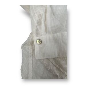 Preowned, good used condition. Two yellow stains on left arm sleeve. Two black stains and missing a button on the cuff on right arm sleeve.