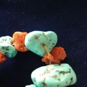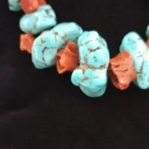 Vintage Turquoise Nugget that with Coral Necklace 17.5" Long