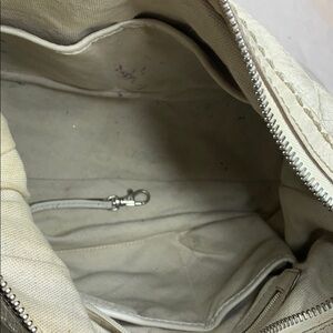 This is an older bag has some ink marks and dirty spots. If you are crafty or willing to do some work on it or could be made beautiful again!